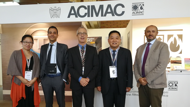 9月27日,意大利博洛尼亚陶瓷展(CERSAIE)期间,中国贸促会建材分会副会长王耀先生与意大利陶机装备协会(ACIMAC)总经理PAOLO GAMBULI先生,副总经理SIMONE CASTELLI先生,市场部GIAN PAOLO CRASTA先生就参加2018广州陶瓷工业展进行了友好沟通。