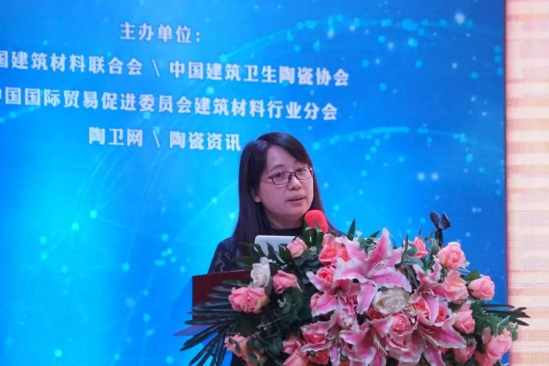 中国国际贸易促进委员会建筑材料行业分会陶瓷事业部副总经理卢宏萍介绍了2018广州陶瓷工业展的招商信息。